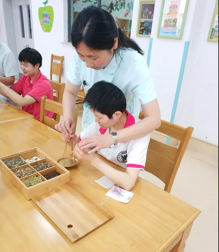5月18日下午,李良濟工作人員前往蘇州市社會福利院總院,看望了殘疾人士,現場還教他們如何自制驅蚊包。