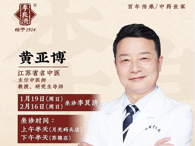 2月16日,江蘇省名中醫(yī)黃亞博主任,將坐診李良濟(jì),文中可直接掛號(hào)預(yù)約